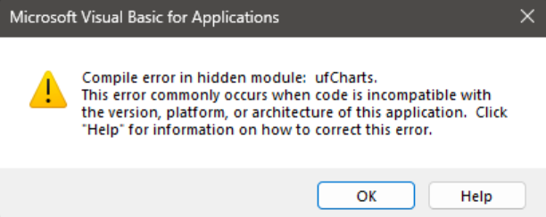 [Compile Error]: Fixed a compatibility issue that caused a "Compile error in hidden module: ufCharts" for some users when opening the add-in.